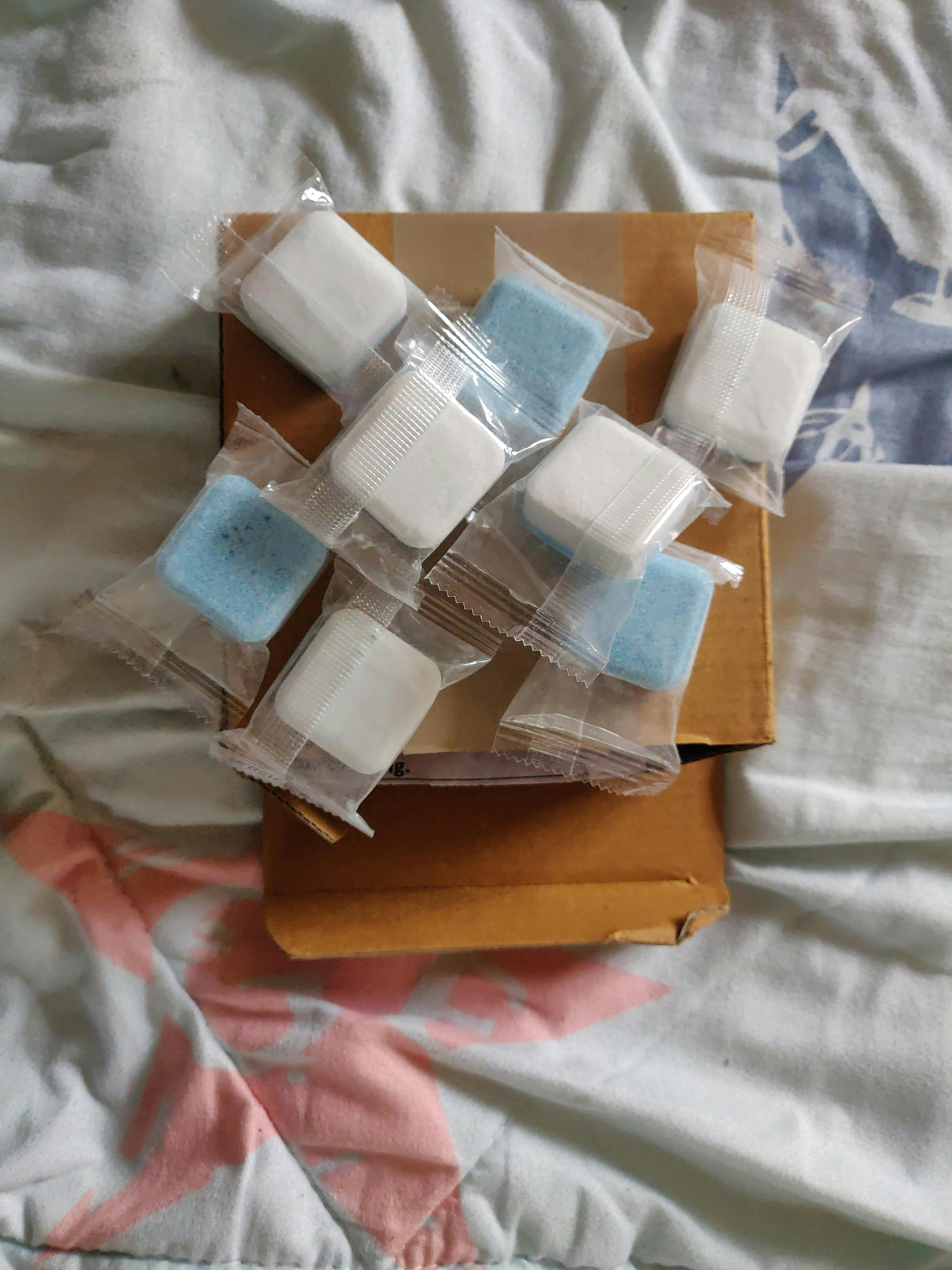 Each effervescent tablet is approx. 2.6 x 2.6 x 1.2 cm/ 1 x 1 x 0.47 inch which is smaller and thinner, can better penetrate, dissolve and remove odor-causing residues.