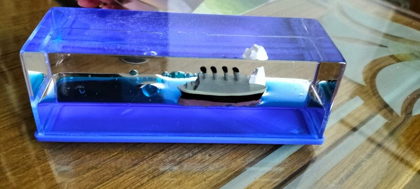 Captivating Oceanic Elegance: Experience the magic of the sea with our Unsinkable Cruise Ship Decor, featuring a ship in perpetual motion in a unique liquid blend. This eye-catching piece ensures your space, whether modern or cozy, is always filled with maritime charm.